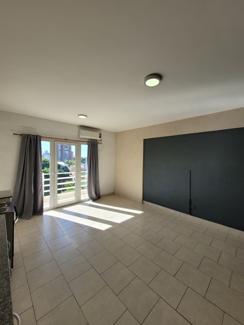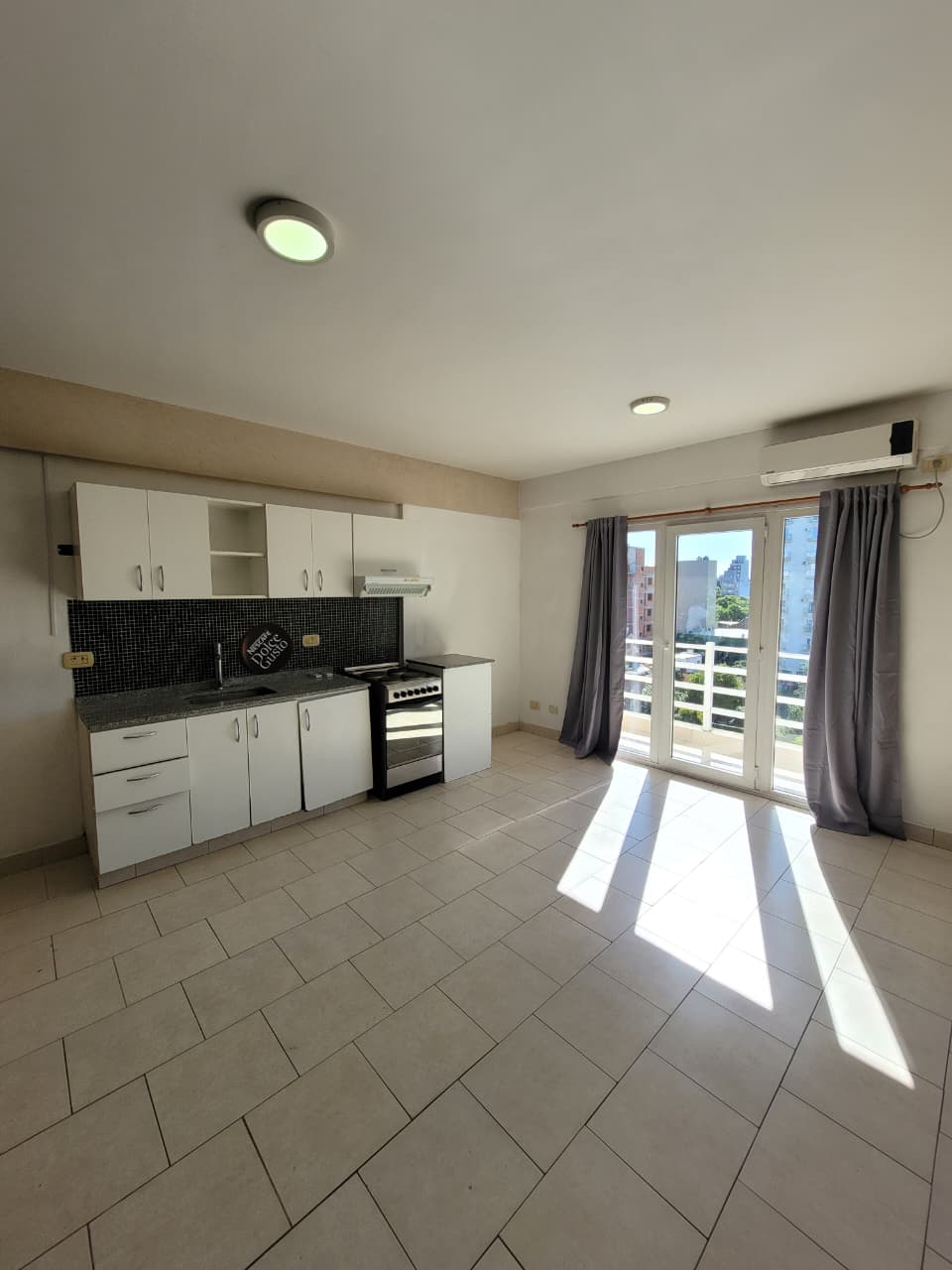 Living comedor con salida a balcón corrido, Cocina equipada con anafe eléctrico, Baño totalmente instalado, Dormitorio con placard, Aire acondicionado frío/calor en living y dormitorio. Todo eléctrico